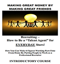If You Skipped Ahead to this Page Because You Like Surfing Websites (Hey, I understand. I do it, too) and You HAVE NOT YET READ the Introductory Course, Recruiting - How You Can Make 6 Figures Working Part-Time From Home as a "Talent Agent" for EVERYDAY STARS... You are cheating yourself. |
